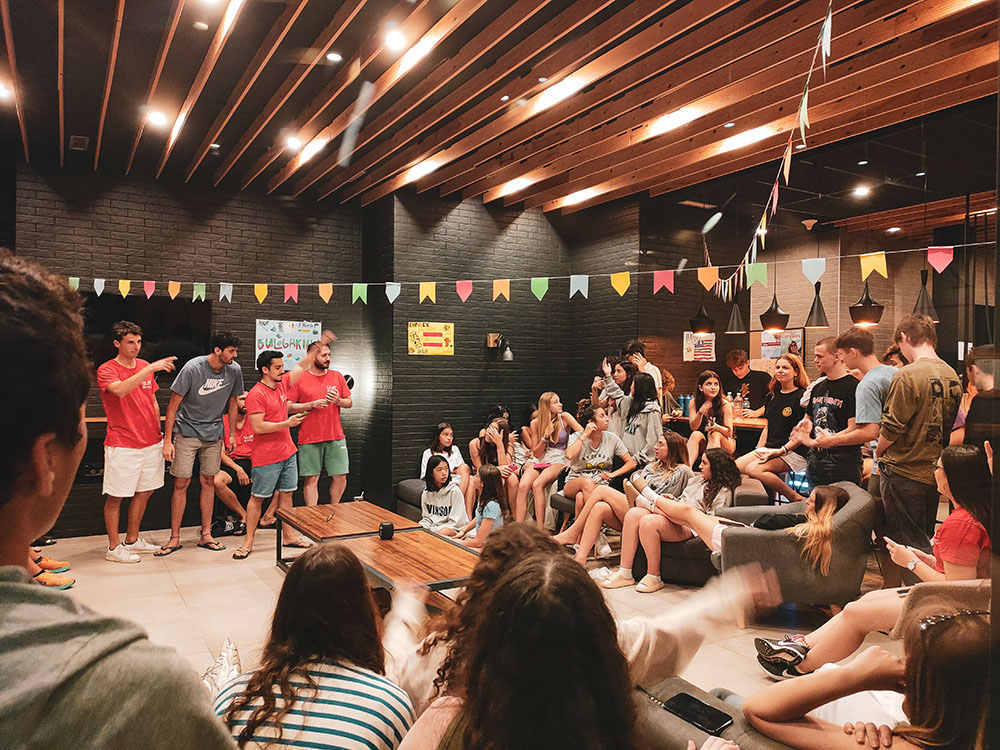 Smeštaj je moderan i opremljen savremenim sadržajima poput sobe za video-igre, teretane za cross-fit na otvorenom, velikih terasa, kafeterije, bioskop sobe, itd., što će učiniti da polaznici maksimalno uživaju tokom njihovog boravka.
